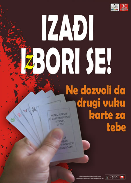 This year campaign was directed toward youth in BiH due to their passivity at the voting procedure during previous elections. Beside challenging youth to vote this campaign has a purpose to challenge youth not just to vote but to "choose" i.e. to recognize and understand way they are giving their vote to the candidate/party (quality of program, profile of the candidate etc.)
