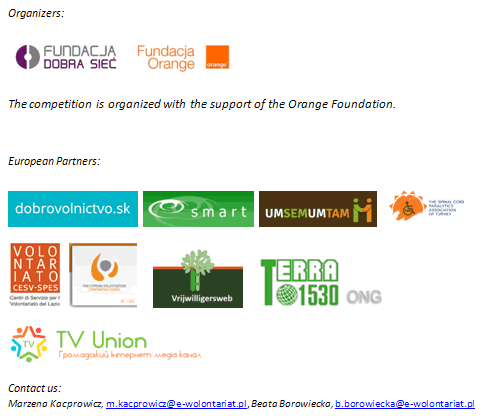 The ‘Discover e-volunteering’ Competition is about promoting and honoring the best initiatives that encourage people to use ICTs in order to change the world for the better. During previous editions of the Competition we collected over 240 projects from 31 European countries – the most interesting are gathered in our database of good e-volunteering practices. Moreover, thanks to the experience gained through the Competition, we prepared a short interactive mash-up describing, what