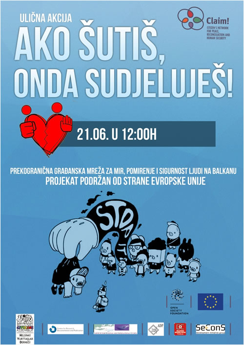 Kampanja „Ako šutiš onda sudjeluješ! Digni glas protiv nasilja!“ se izvodi u okviru projektnih aktivnosti Prekogranične građanske mreže za mir, pomirenje i sigurnost ljudi na Balkanu ( http://cn4hs.org/), čiji su partneri organizacije civilnog sruštva iz: Turske, Bosne i Hercegovine, Crne Gore, Srbije i Kosova, a pod pokroviteljstvom Evropske Unije i Open Society Foundation.