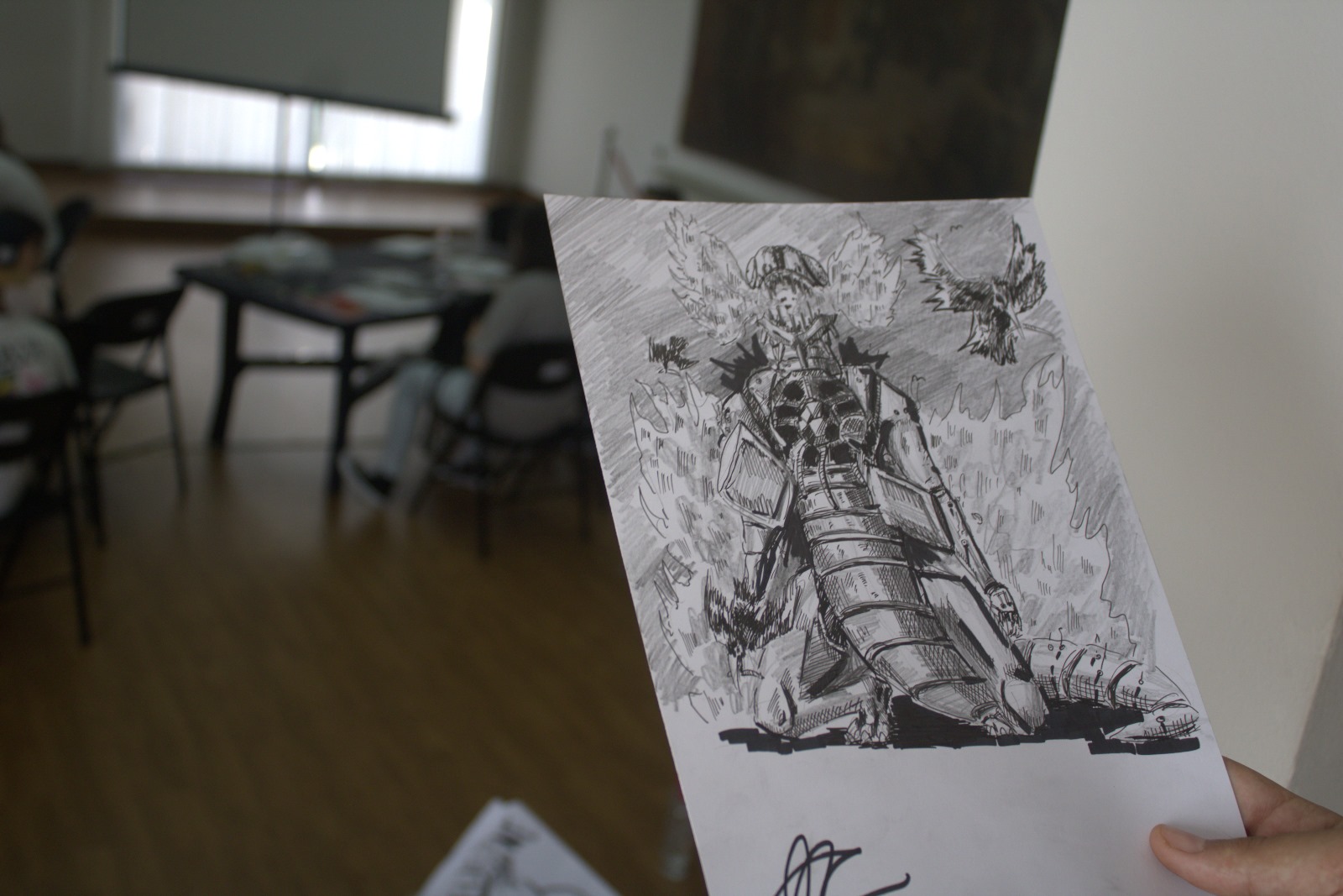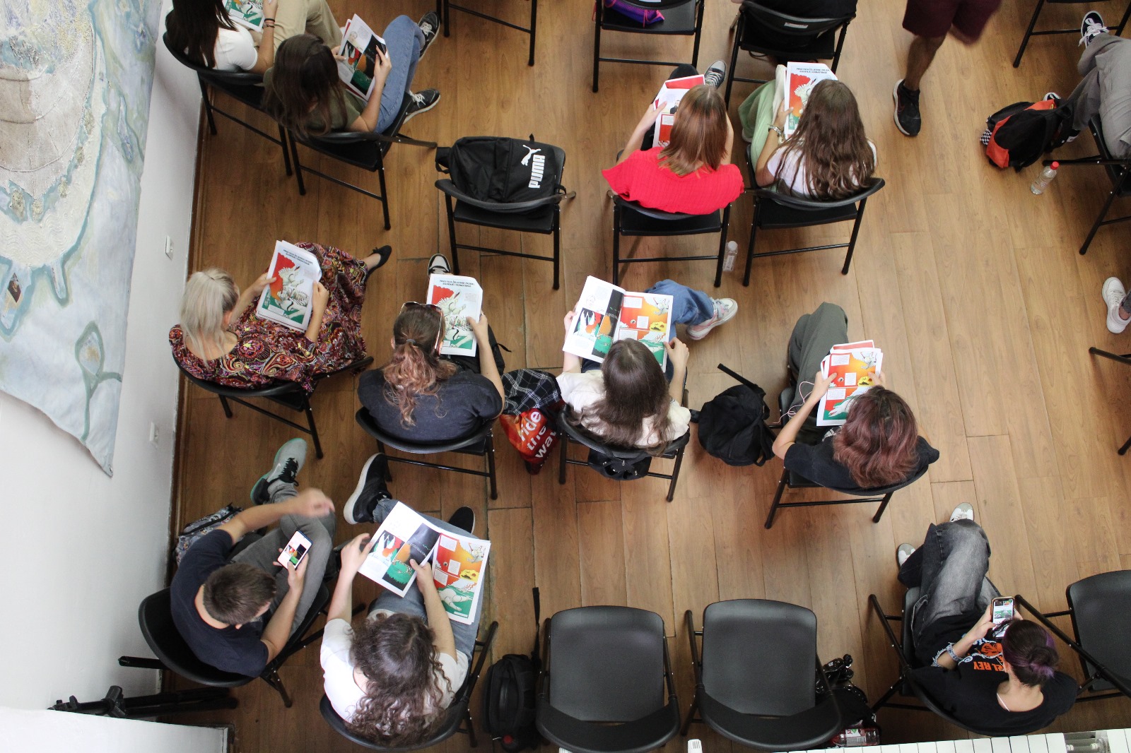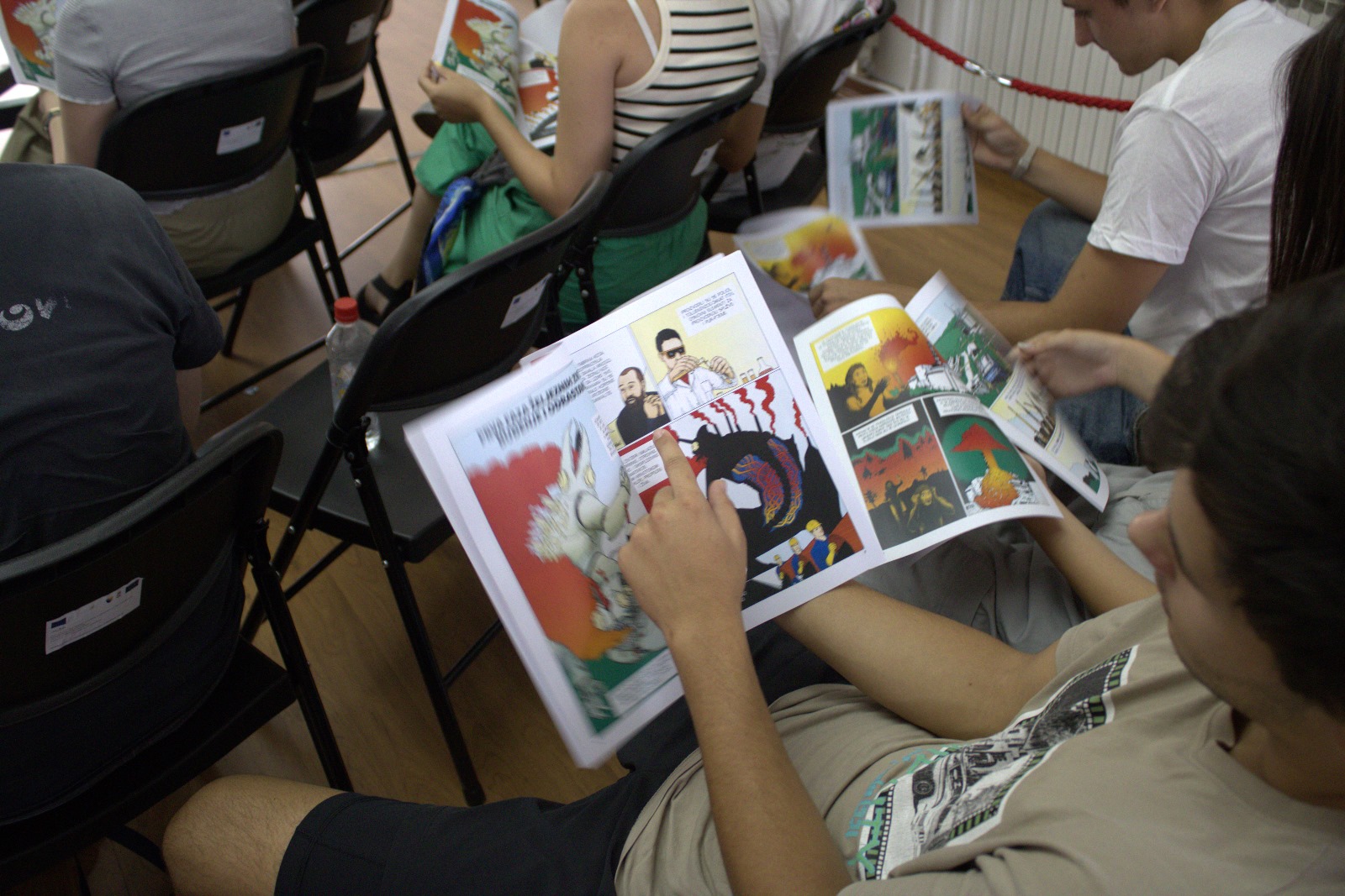 Radionicu su vodili teoretičar književnosti Damir Arsenijević i ilustrator Marko Gačnik, a okupila je brojne učesnike, bez obzira na njihovo prethodno iskustvo sa stripom ili crtanjem.